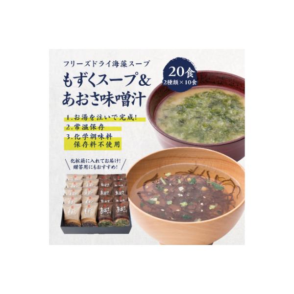 宇土市 フリーズドライスープ もずくスープ あおさ味噌汁 20食セット ふるさと納税 お礼品詳細 フリーズドライスープ もずくスープ あおさ味噌汁 20食セット 1103177 さとふる